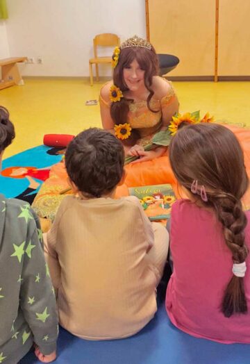 Unter dem Jahresmotto “Gemeinsam einzigartig” wurde mit diesem Event die Vielfalt unserer Gesellschaft gefeiert. Schulz & Sohn lieferte in diesem Jahr einen besonders märchenhaften Beitrag. Inhaber Dr. Klaus V. Schulz erschien in Begleitung von Prinzessin Saleia, die im wahren Leben Sabrina heißt und unsere wunderbare Mitarbeiterin in der Abteilung Zentrale Dienste ist. Als Prinzessin jedoch verzauberte sie die Kinder, in dem sie aus Ihrem selbst verfassten Märchenbuch „Salaia, die Sonnenblumenprinzessin“ gemeinsam mit Dr. Schulz vorlas. Die 4-6-jährigen Kinder lauschten gebannt der Geschichte der kleinen Prinzessin Saleia, die in der Schule unter Hänseleien leidet und verzweifelt, aber schließlich Dinge findet, die sie trösten.