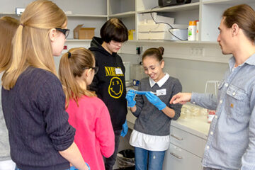 Zunächst besuchten die Mädchen das hauseigene Labor. Unter dem Mikroskop entdeckten sie die Welt der Kleinstlebewesen (Bakterien). Was das mit Reinigungsmitteln zu tun habe, so fragten sich einige. Sie wurden vom Laborleiter Sebastian Stappen aufgeklärt, dass man erst einmal wissen müsse, wie der Schmutz aussehe und woraus er bestehe, bevor ein Mittel entwickelt werden könne, um diesen zu beseitigen.