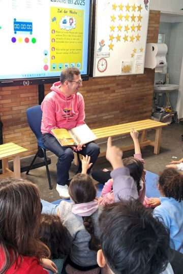 Our three volunteers read aloud in different mixed-age learning groups, which are organised according to the Montessori principle. In these groups, children in grades 1 to 4 learn together – an approach that promotes independence, creativity and individual development.